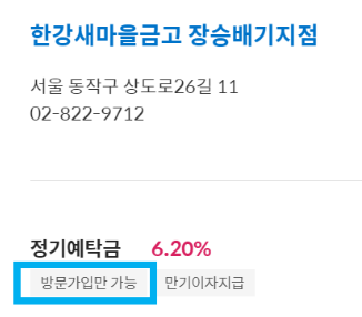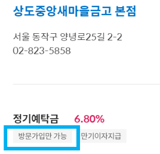 ※상도중앙새마을금고에서 입출금 통장을 개설 한 후 가입이 가능합니다. (입출금통장 20일 제한 해당)