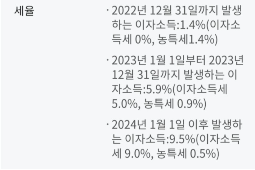 2023년 내 가입 시 5.9% ▶ 이자소득세 5% + 농특세0.9%