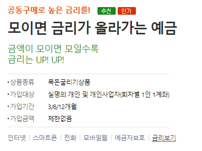 우리은행 예금금리 정보 - 모이면 금리가 올라가는 예금