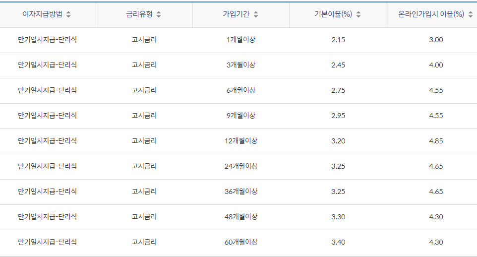 정기예금 금리비교 시중은행: 신한은행