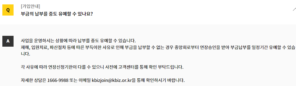 - 노란우산공제에는 납부 일시 중지 기능이 있습니다.