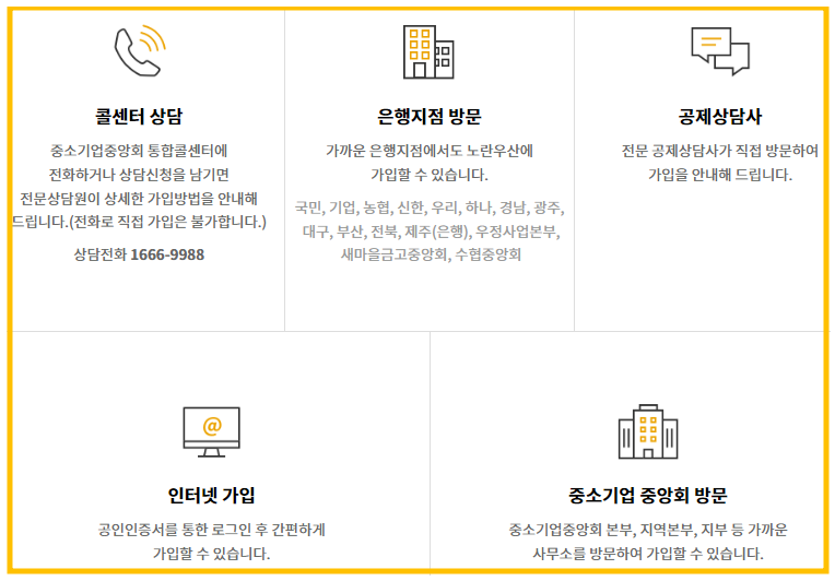 ▶방문가입 : 은행 또는 중소기업중앙회에 방문하여 가입